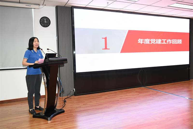 会议由公司党委副书记吉云主持,在庄严的国歌声中启幕。党委委员黄红如同志在会上作2024-2025年度党建工作报告,系统回顾了过去一年党组织在政治建设、思想引领、组织发展、公益践行等方面的扎实举措与显著成效,展现了全体党员在各条战线率先垂范的担当作为。