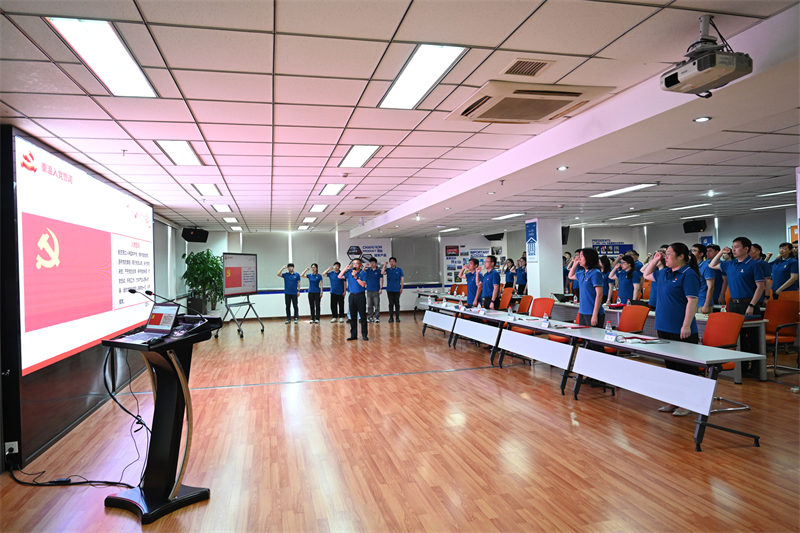 在党委书记林爱彬带领下,全体党员集体重温入党誓词,庄严宣誓。80字入党誓言字字千钧,既是初心起点,更是终身信守的信仰契约,激励着全体党员在公司 "智改数转"" 绿色发展 "的新征程中践行承诺、勇毅前行。