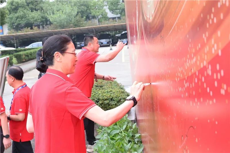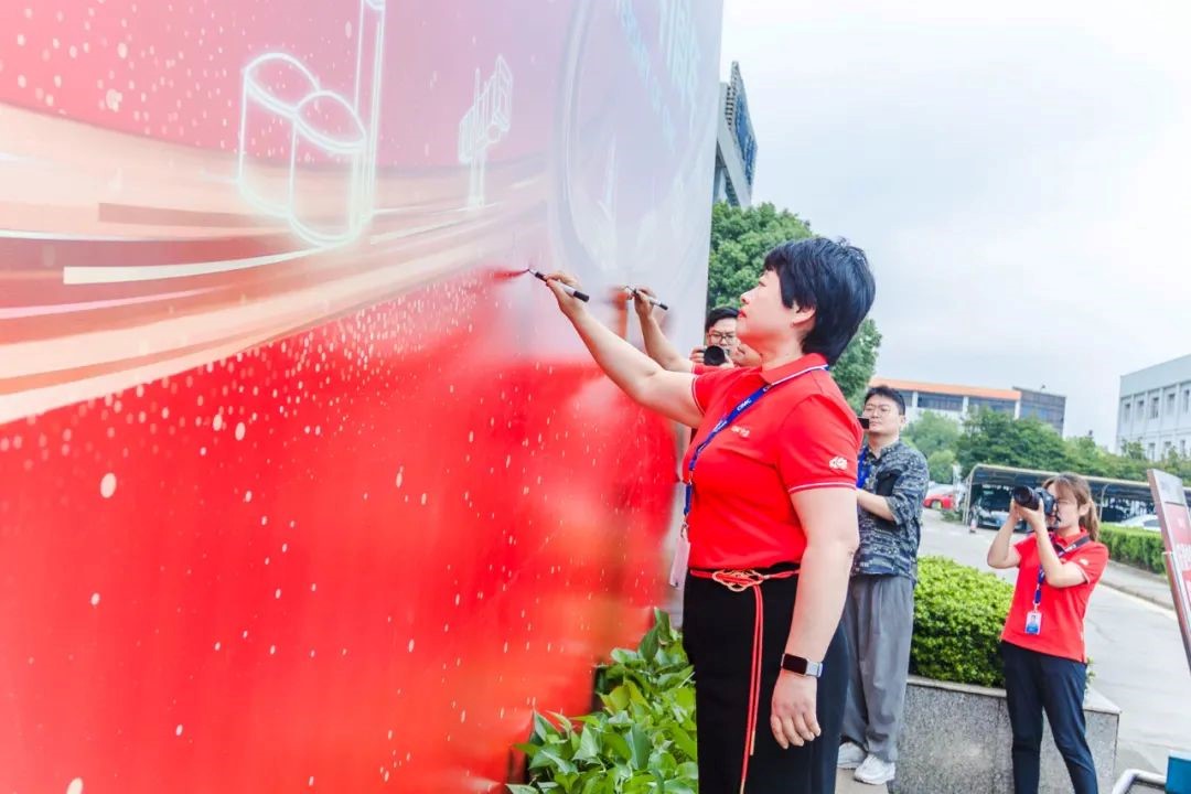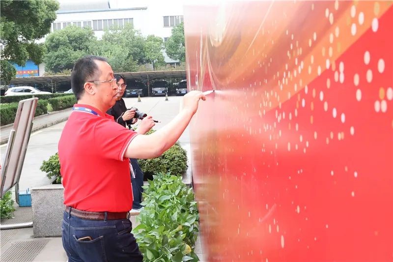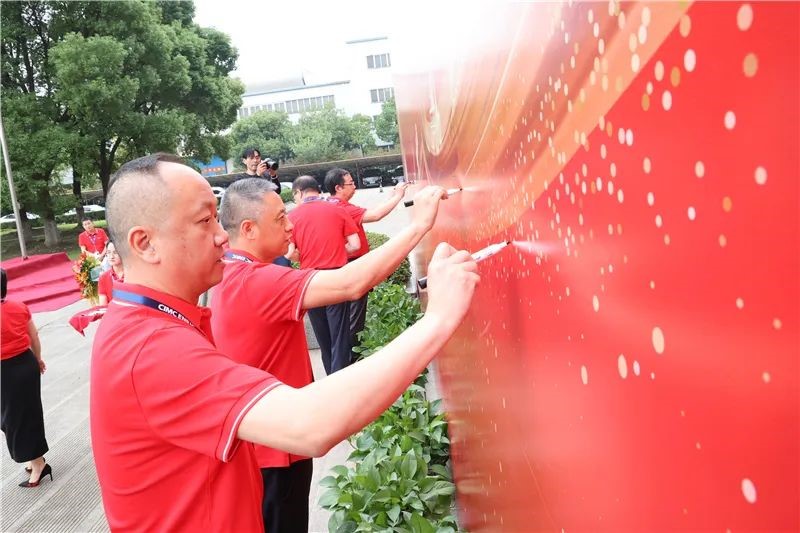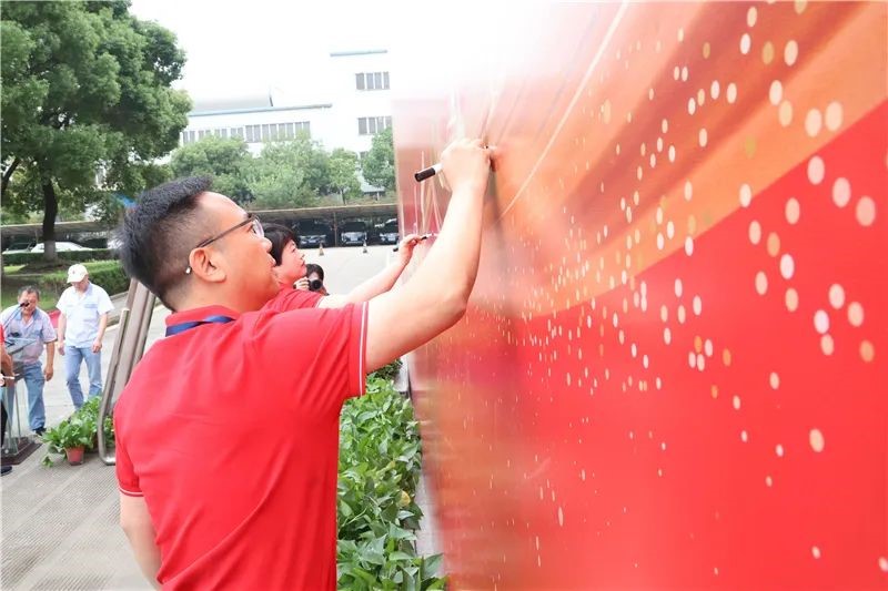 最后,南通中集两板块各公司管理部领导与员工在“中集日”主题背景板上签名、合影留念,表达对中集集团、对公司未来发展的期许和祝福。
