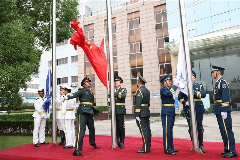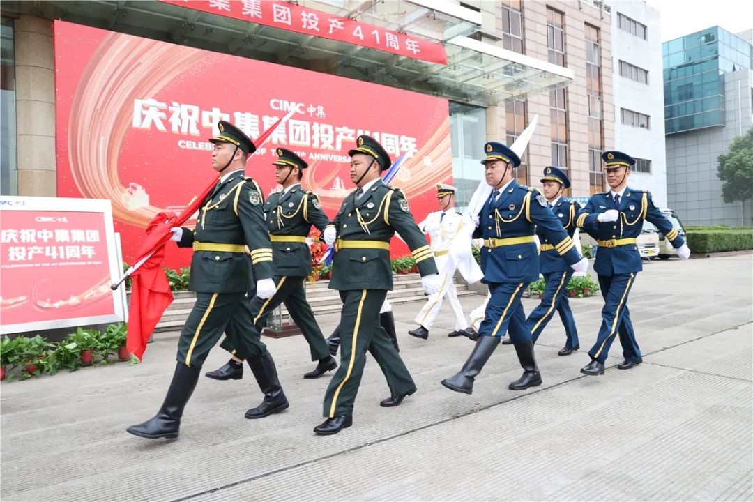 上午9时22分,升旗仪式正式开始,参加活动的全体人员昂首挺胸,迎旗而立,列队方阵整齐划一。护旗队迈着铿锵有力的步伐走向旗台,振臂展旗。迎着秋风,在全体人员庄严的注目礼下,五星红旗、中集集团司旗、南通中集司旗相继冉冉升起。而此刻,从改革开放的最前沿蛇口到中国近代第一城南通,从璀璨岭南大地到广阔江海平原,雄壮的《义勇军进行曲》和高昂的《中集之歌》跨越千山万水,“同一面旗帜,同一个梦想”的心声汇聚交织,“团结进取”、“高效创新”的雄浑乐章响彻云霄,在每一个中集人的心中同频共振,久久激荡。