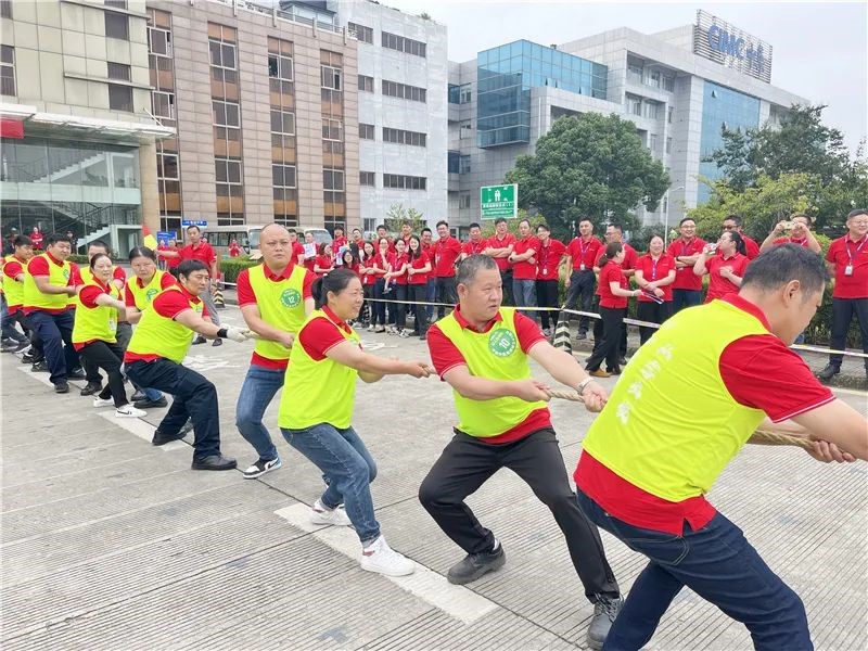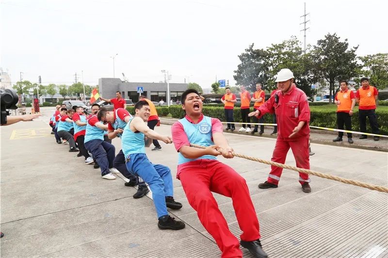 在庄严肃穆的升旗仪式圆满落幕后,轻松有趣的拔河比赛正式开始,各公司推选的60名参赛选手,通过现场抽签组成自强不息队、追求卓越队、以人为本队、共同事业队四支联合队,参加了本次别开生面的友谊赛。